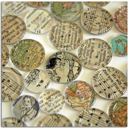 Az áttetsző gombokat varázsolhatjuk egyedivé dekupázs technika alkalmazásával. A kiválasztott mintát a gomb hátuljára ragasztva, tulajdonképpen végtelen lehetőséget kapunk. Természetesen nem csak a szalvéta felel meg a célnak, mint a képeken is láthatjátok, egy jó kis újság is csodákra képes.