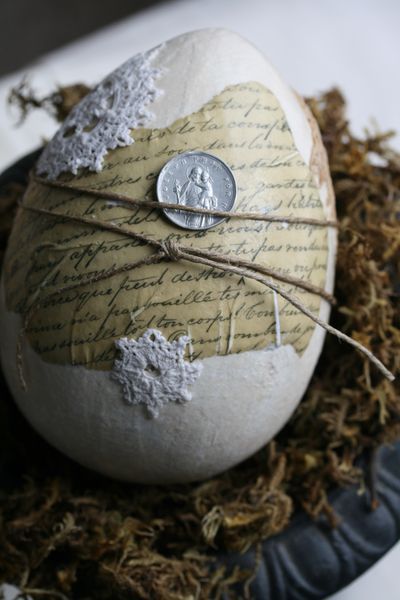 Ezeket a szépségeket az internetről keresgéltem neked, mint láthatod nem kell hozzá sok, hogy valóságos kis kincseket alkoss. Újságpapír (csíkokra vágva), csipke, gomb, spárga, zsákvászon szalag, vizes alapú papír ragasztó és már kezdődhet is a varázslat: garantáltan egyediek lesznek a tojások!!!