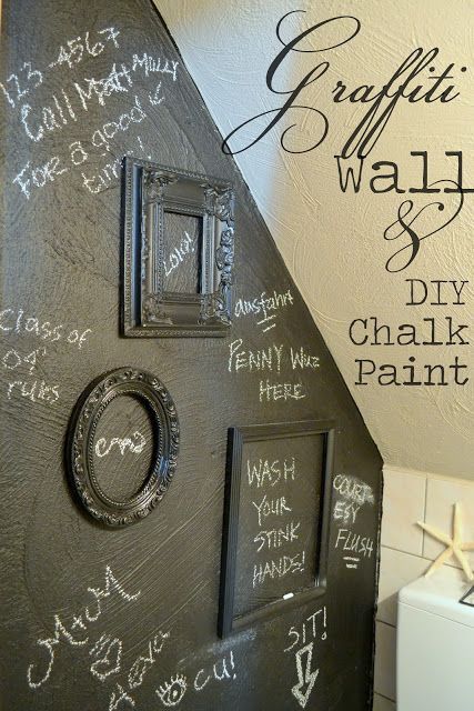 Sötétre festett fal és kréta. Lehet üzenni, rajzolgatni vagy éppen hirtelen támadt nagy ötleteket lejegyezni mielőtt lehúznánk őket a wc-n
