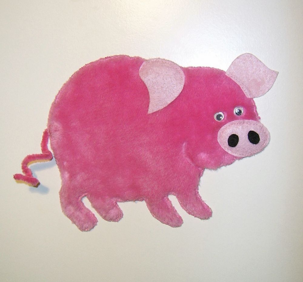 Ezután a kivágott filcre felragasztottam a bundákat és az egészet körbe szegtem varrógéppel. A száj és fül részt kézi hímzéssel emeltem ki.