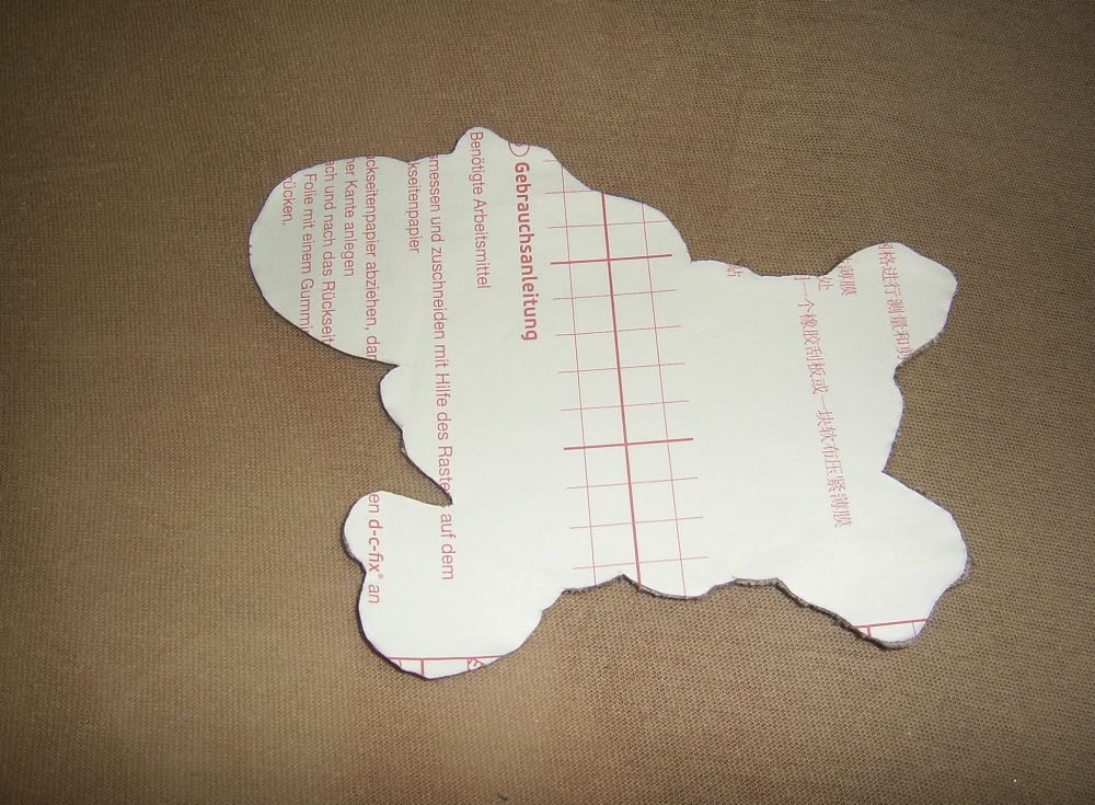 A második kinyomtatott mintából kivágtam azokat a részeket, amelyeket plüssből szerettem volna kiszabni. Bárányka esetében a testét fedő bundát ( lásd: lenti kép).